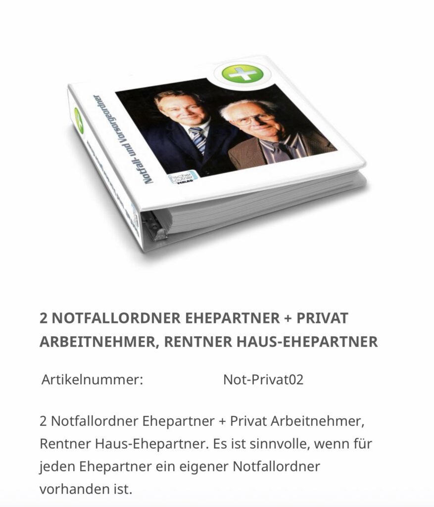 So benötigen beispielsweise Beamte, Ärzte, Zahnärzte, Apotheker, selbstständige Unternehmer sowie 41 verschiedene Handwerksberufe jeweils eine andere Form der Vorsorge. Diese spezialisierten Notfallordner enthalten zusätzlich zum Grundordner berufsspezifische Übersichten und Zusatzkapitel mit jeweils etwa 20 bis 25 weiteren Seiten, die exakt auf die jeweilige Berufsgruppe zugeschnitten sind. Dadurch werden Themen wie Betriebsfortführung, Vertretungsregelungen, Kammern, Haftungsfragen oder spezielle Versicherungen gezielt berücksichtigt.